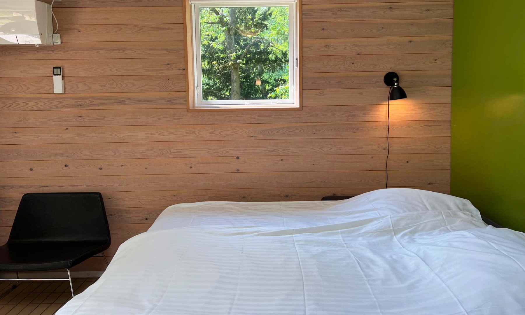 Hvert feriehus har seks sovepladser: Fire køjer i soveværelset og to sovepladser i sofaen i stuen, der kan trækkes ud til en dobbeltseng.